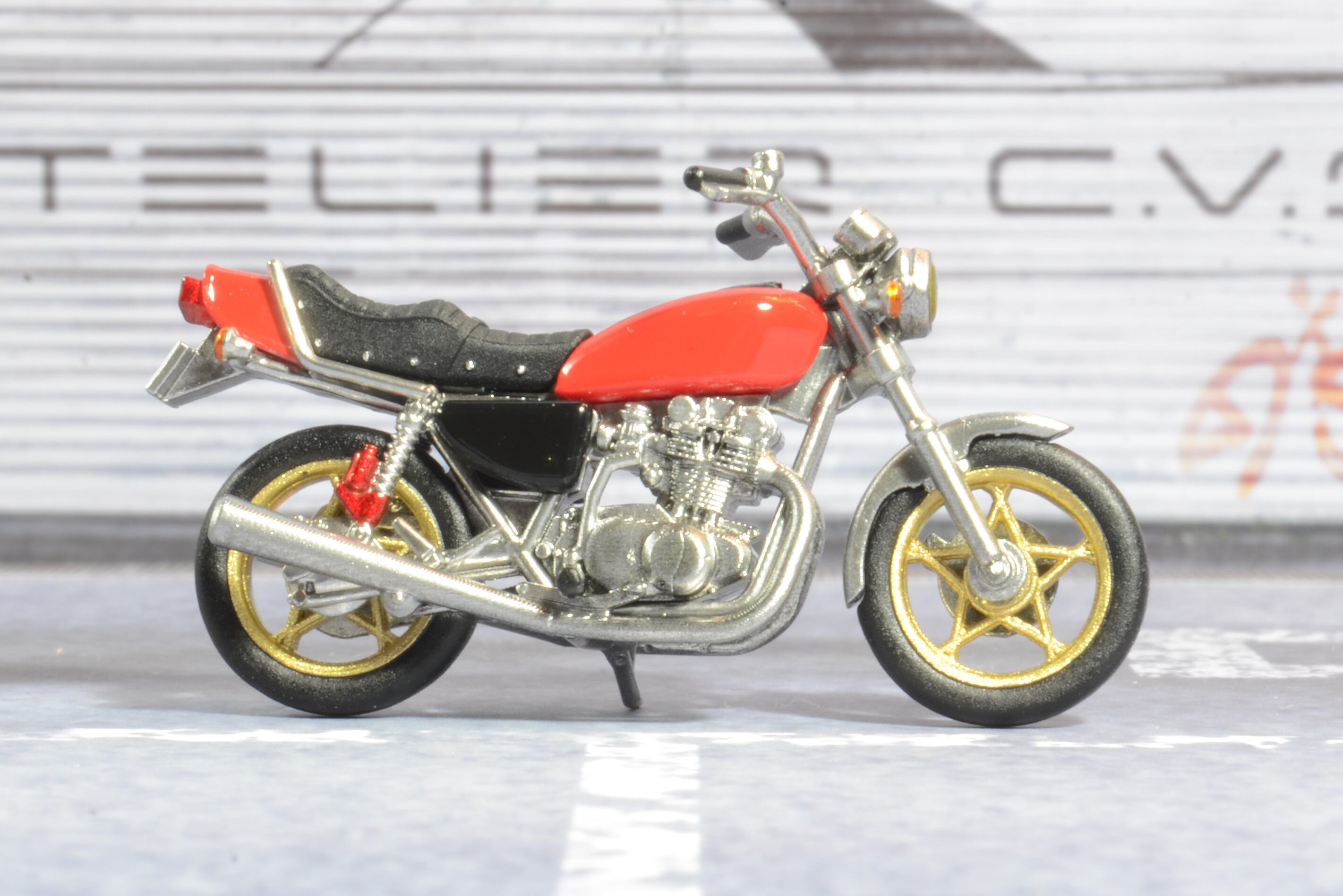 70年代末期に登場した4ストローク2気筒のマシンを1/64スケールで再現。